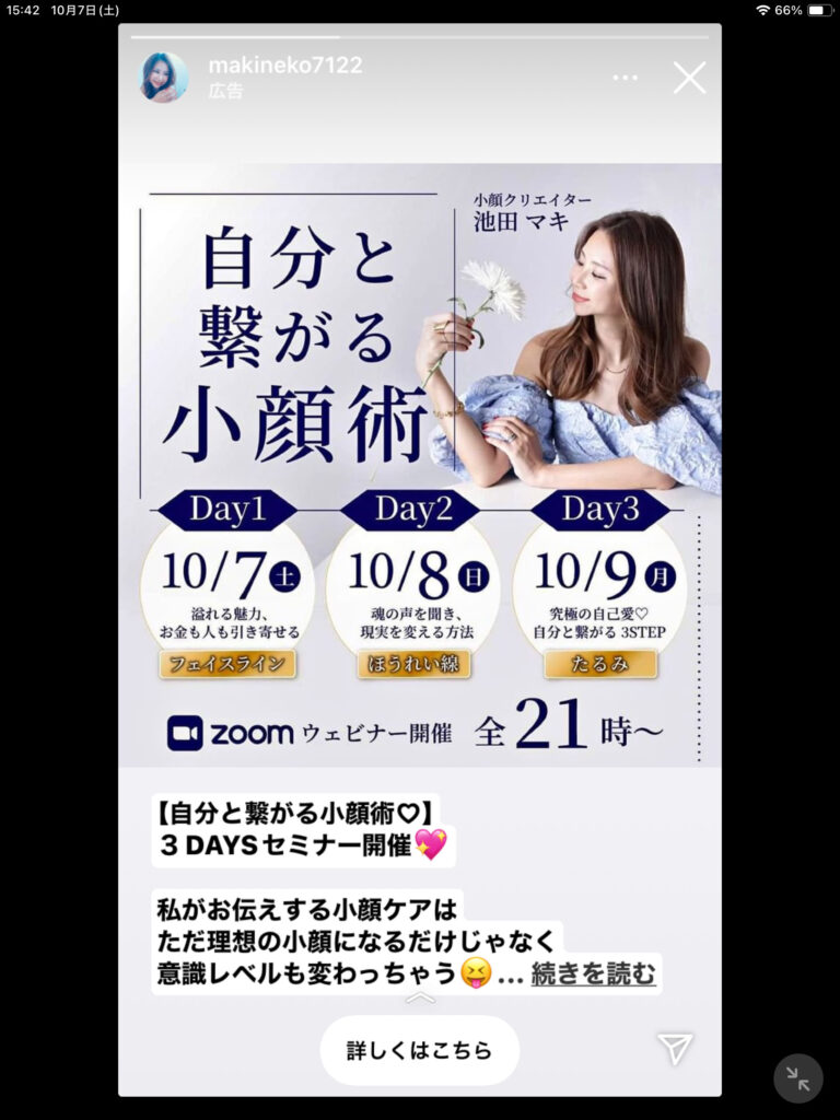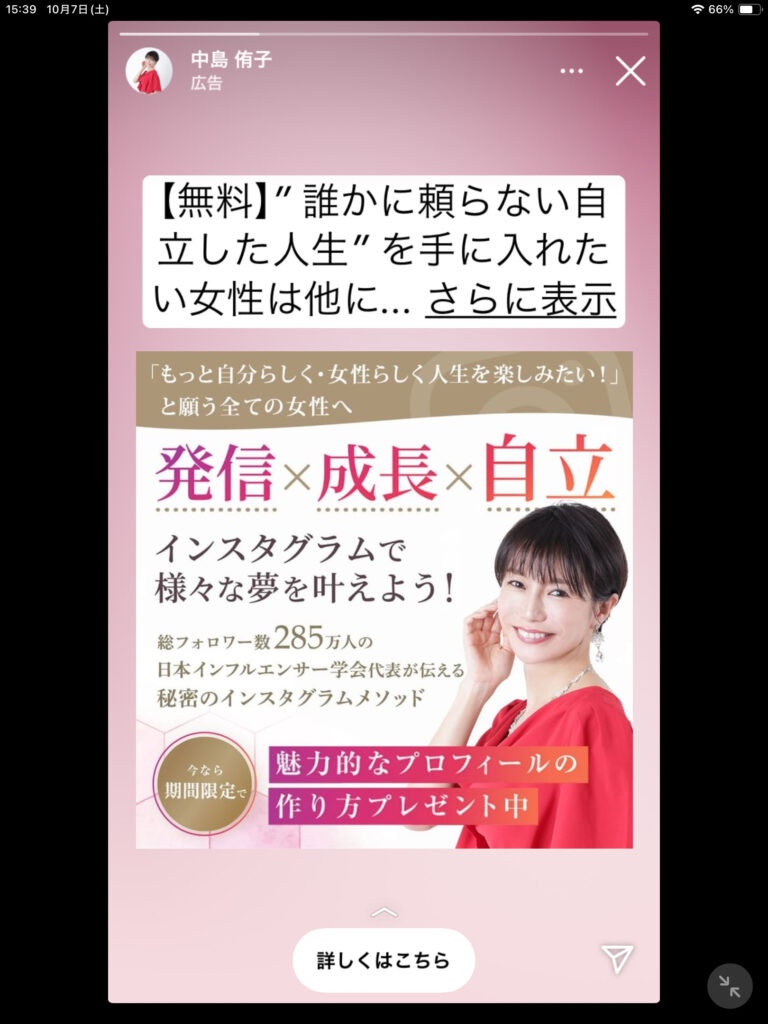 その人の広告がInstagramやFacebookに流れてくるようになります。