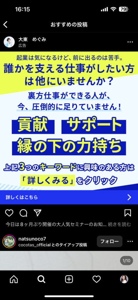 たとえば、Instagramの投稿でも